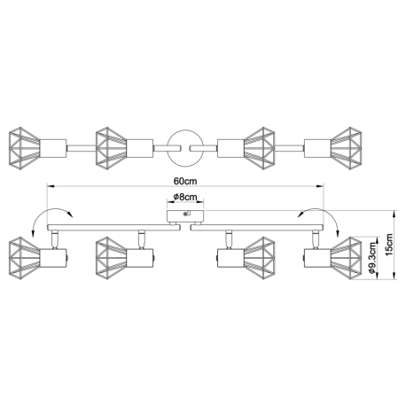 GL-54802-4 Stropní svítidlo, chrom, sklo čiré, nastavitelné, DxV: 60x15cm, bez žárovek 4xE14, max. 40W 230V. - Xara I