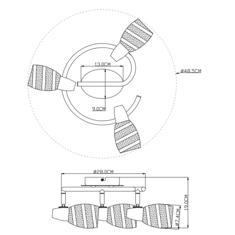 GL-54985-3 Stropní svítidlo, chrom, satinované sklo, Ø28cm, V:19cm, bez žárovek 3xE14, max. 40W 230V. - Roy - Globo