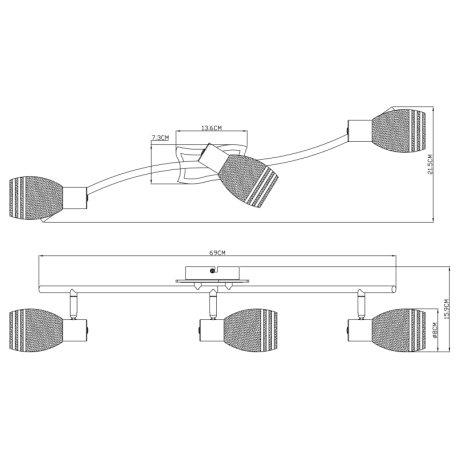 GL-541010-3 Stropní svítidlo, chrom, MDF wenge, satinované sklo, Dx?xV: 69x22x16cm, bez žárovek 3xE14, max. 40W 230V. - Toay