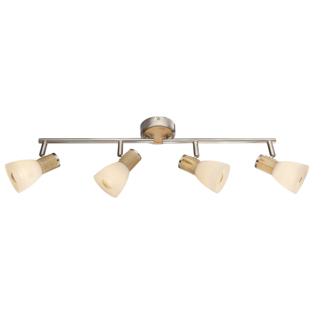 GL-54352-4 Stropní svítidlo, nikl matný, dřevo, sklo bílé pruhované, DxV: 60x16cm, bez žárovek 4xE14, max. 40W 230V. - Gylfi