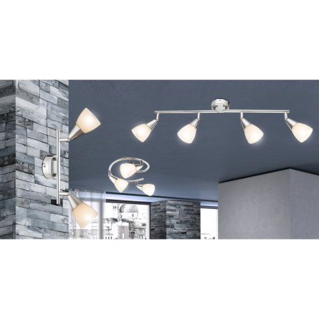 Moderné bodové svietidlá s pochrómovaným kovovým telom a opálovým sklom sú vhodné do celého bytu. Možno ich vybaviť inteligentnou LED žiarovkou, a tak meniť intenzitu a farbu svetla a vytvoriť v byte príjemnú atmosféru. |