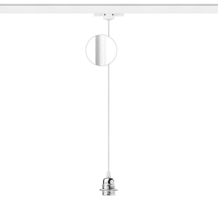 Textilný kábel s kovovou objímkou v rôznych farebných kombináciách, zakončený adaptérom na zavesenie do trojkrúžkovej lišty. |