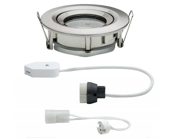 Svietidlá sa dodávajú s objímkou GU10 (230 V) aj GU5,3 (12 V - vyžaduje transformátor) - min. hĺbka zapustenia sa líši podľa použitej objímky |