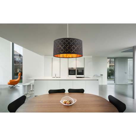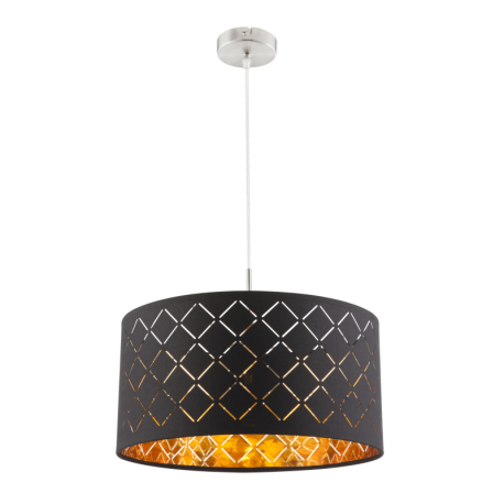 GL-15229H Závěsné svítidlo, kov nikl matný, tkanina zlato-černá, stínidlo s ozdobným děrováním, Ø40cm, V:140cm, bez žárovky 1xE27, max. 60W 230V. - Clarke gold
