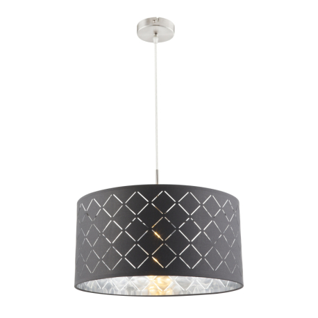 GL-15228H Závěsné svítidlo, kov nikl matný, textil šedý, stínidlo s dekorativním děrováním, Ø40cm, V:140cm, bez žárovky 1xE27, max. 60W 230V. - Kidal