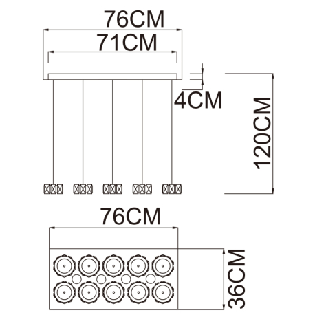 GL-49350-92H Závěsné svítidlo, kov, chrom, akryl, skleněné křišťály, 4 LED spoty ve vrchní části svítidla, Dx?xV: 76x36x120cm, včetně 1xLED 96W 230V, 6500lm, 4000K. - Amur globo 2