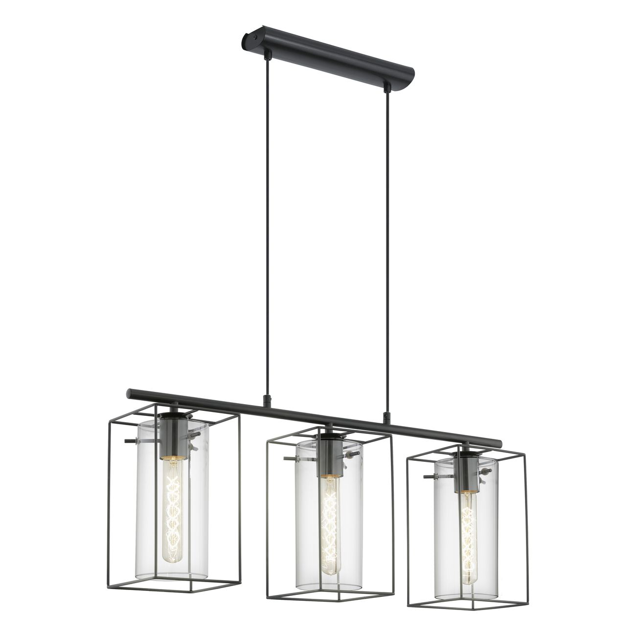 Zaujímavé a štýlové závesné svietidlá vyrobené z ocele v čiernej farbe a z dymového skla. Svietidlá je možné osadiť aj dizajnovou filamentovou žiarovkou, čím podčiarknete celkový vzhľad svietidla. |