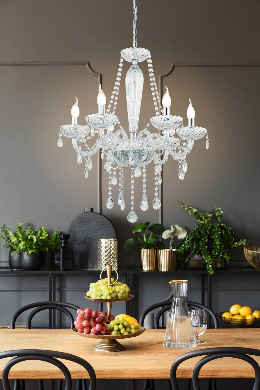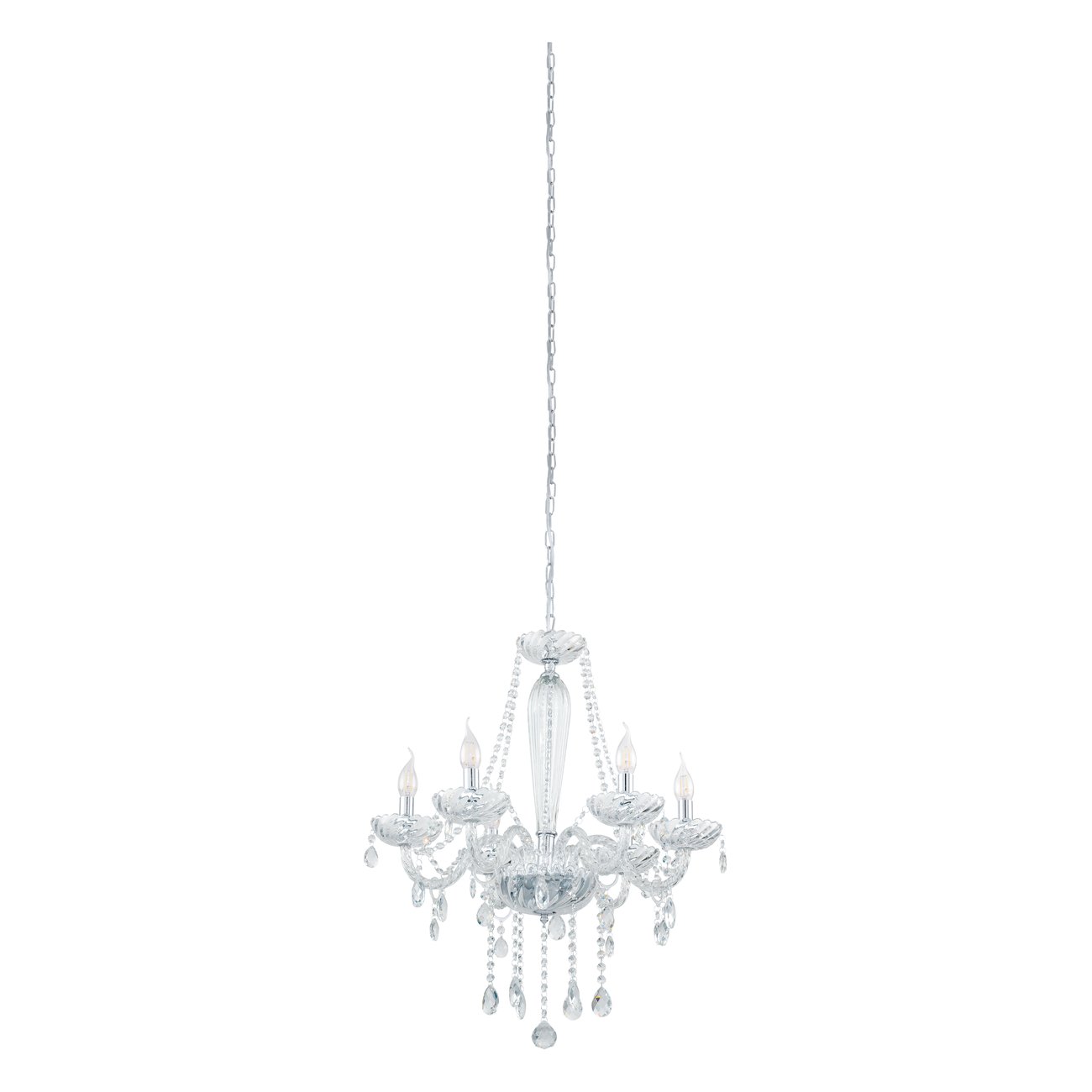Basilano sú lustre v klasickom štýle. Sú vyrobené z ocele vo farbe chrómu a skla v čírej farbe. |