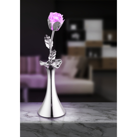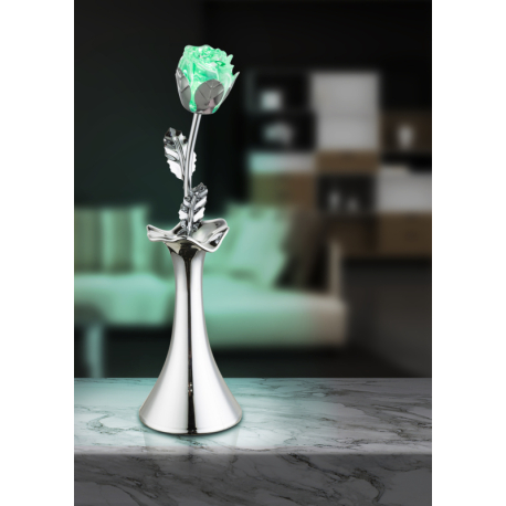 GL-28112 Dekorativní svítidlo, chrom, akryl, váza s růžičkou, vypínač, změna barvy světla, bez baterií 3xAAA 1.5V, Ø8cm, V:29cm, 1xRGB LED 0.06W 4.5V, multicolor. - Jimmy GL