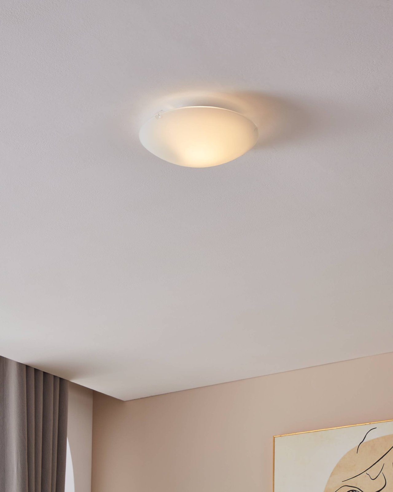 Jednoduché stropné svietidlá vyrobené z kovu a satinovaného bieleho skla. Možno ich osadiť aj na stenu. Svojou jednoduchosťou sú vhodné ako do chodieb, tak obývacích priestorov, či pracovní. |