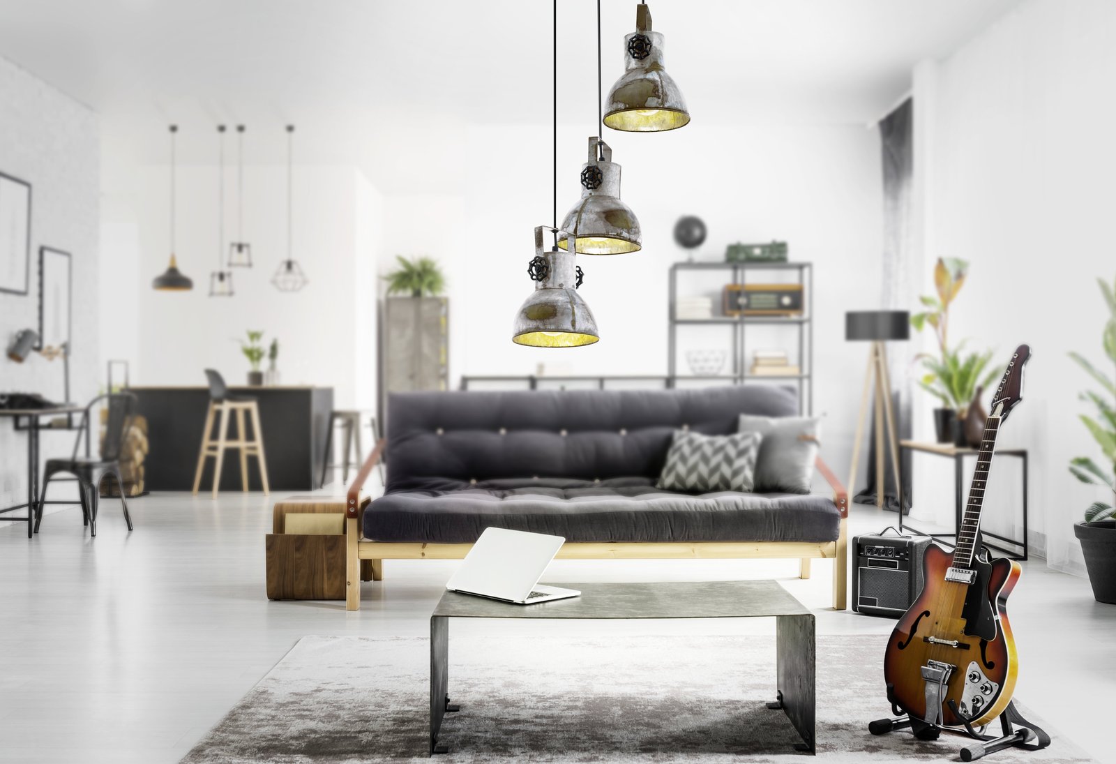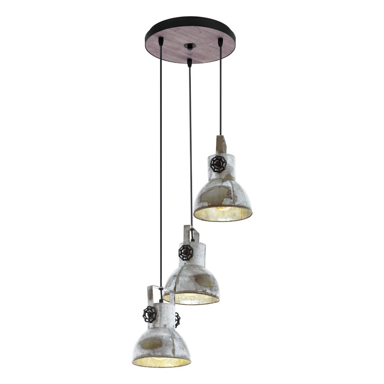 Zaujímavé bodové svietidlá vyrobené z ocele a dreva. Svietidlá majú veľmi osobitý, industriálny charakter. Základňa má hnedú farbu a tienidlá sú v patine vzhľad zašlého zinku. |