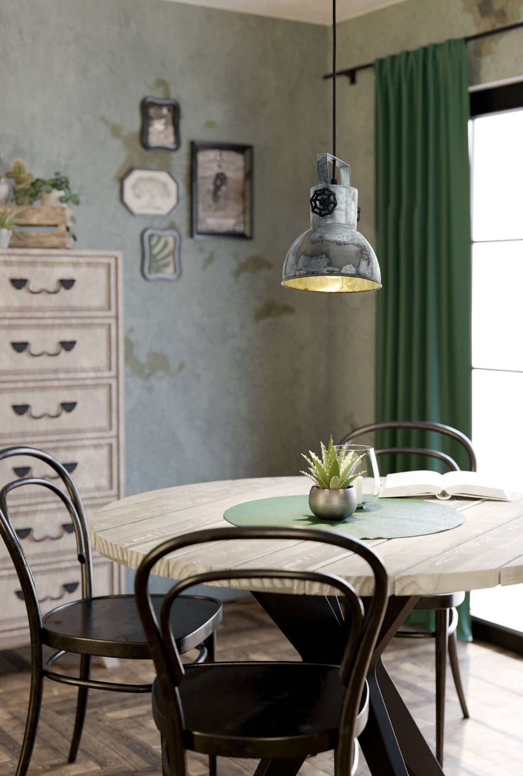 Zaujímavé bodové svietidlá vyrobené z ocele a dreva. Svietidlá majú veľmi osobitý, industriálny charakter. Základňa má hnedú farbu a tienidlá sú v patine vzhľad zašlého zinku. |