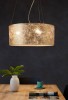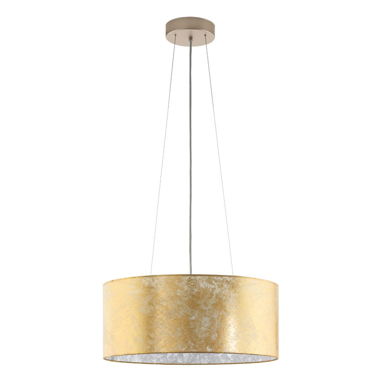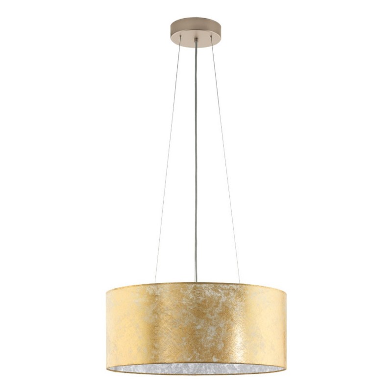 Moderné svietidlá Viserbella sú vyrobené z ocele vo farbe champagne a textilu vo farbe zlata. |