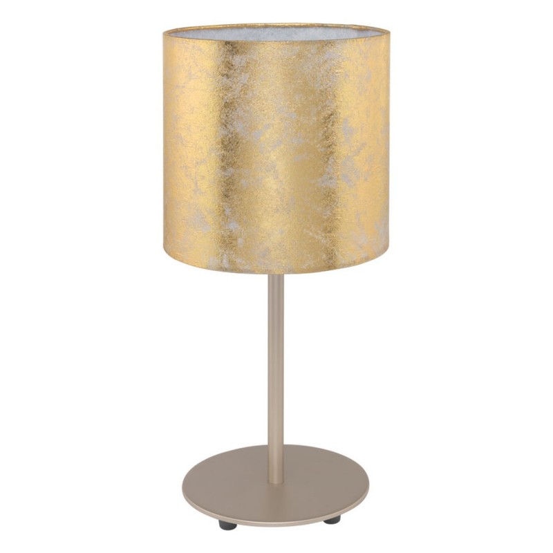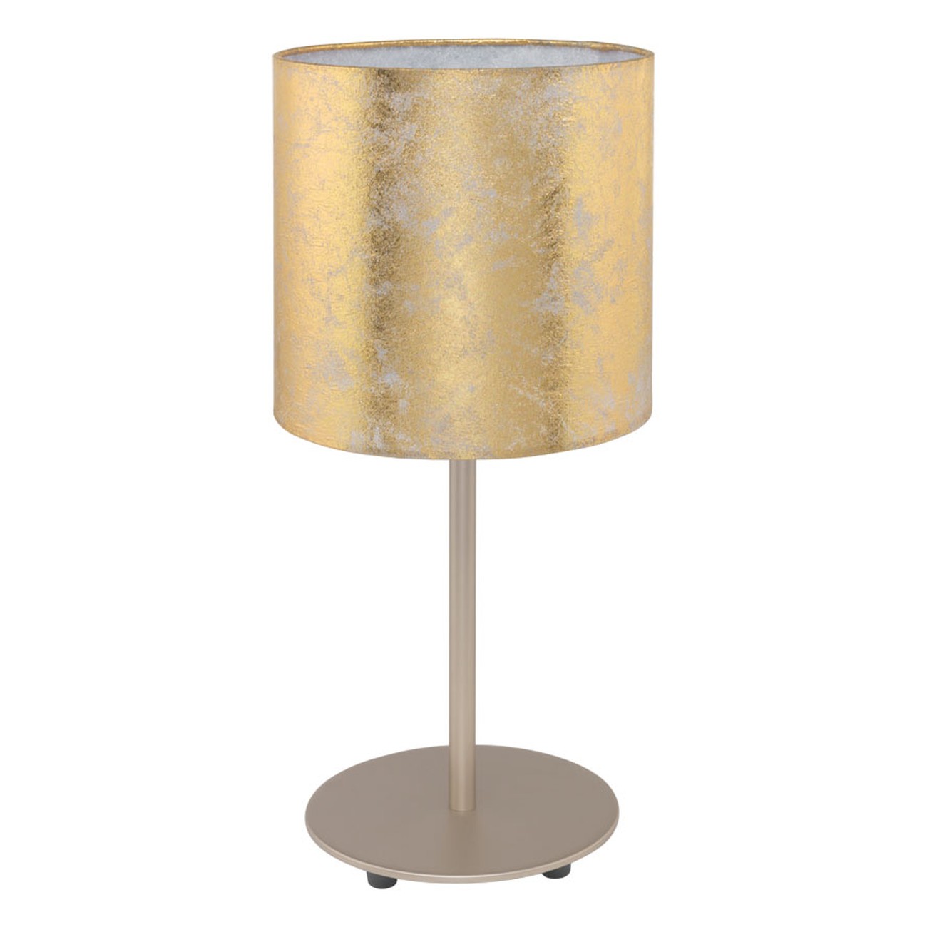 Moderné svietidlá Viserbella sú vyrobené z ocele vo farbe champagne a textilu vo farbe zlata. |