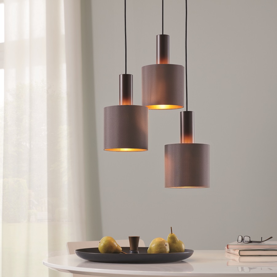 Moderné svietidlá Concessa 1 sú vyrobené z ocele v tmavo hnedej farbe a textile v kombinácii cappuccino a zlatá. Nakombinovaním všetkých svietidiel z tejto sady utvoríte ucelený celok interiéru. |