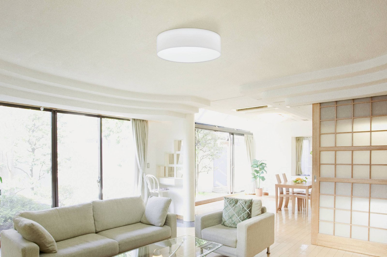 Okrúhle, jednoduché, avšak veľmi moderné a vkusné stropné svietidlá vyrobené z ocele a textilu v bielej farbe. Hodí sa do všetkých moderných interiérov, kde bude vkusným doplnkom. |