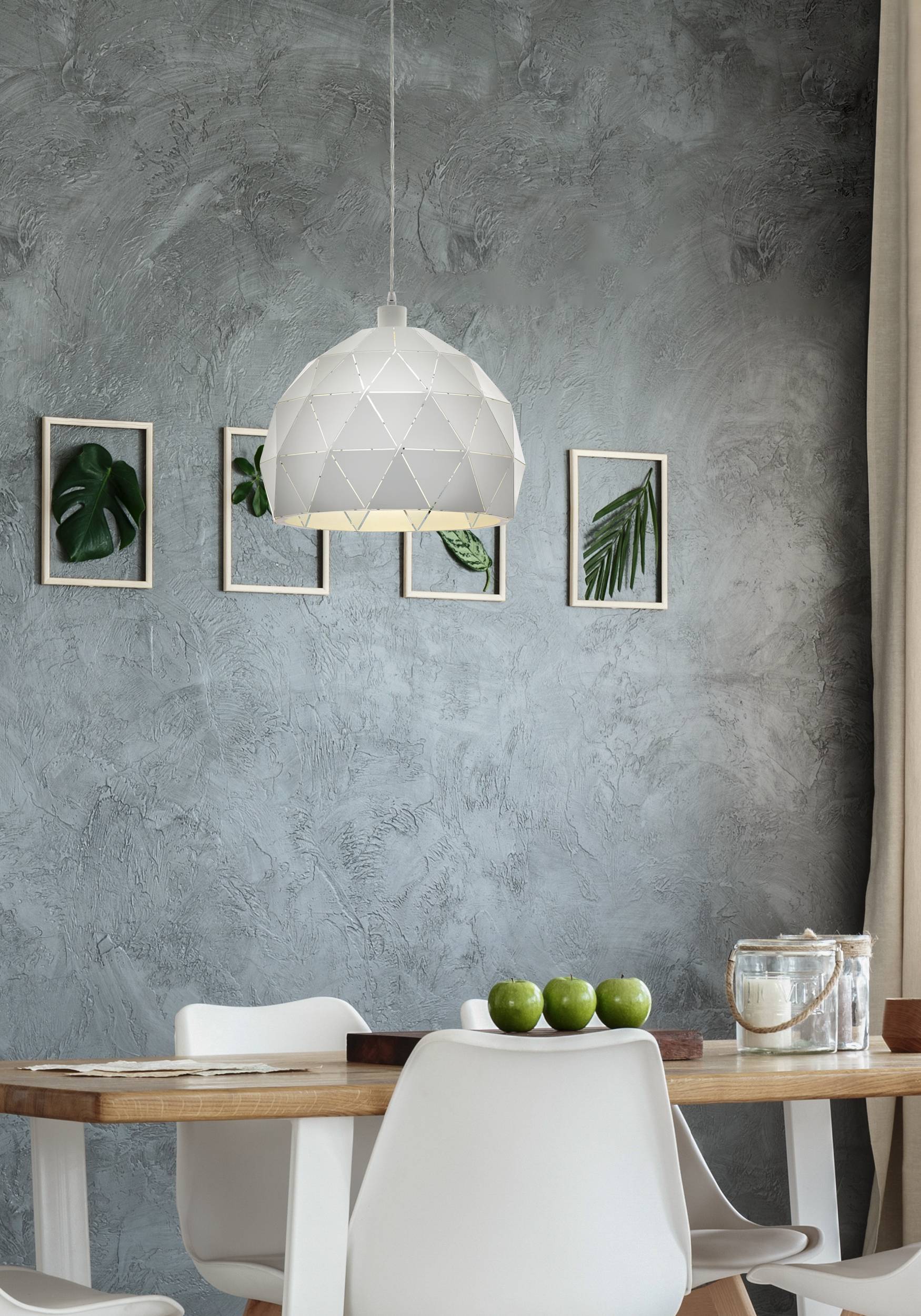 Štýlové závesné svietidlá vhodné do všetkých moderných interiérov. Sú vyrobené z ocele v bielej farbe. Tienidlo je tvorené malými spojenými trojuholníkmi, ktorými presvitá po rozsvietení svietidla svetlo, čo vyzerá veľmi efektne. |