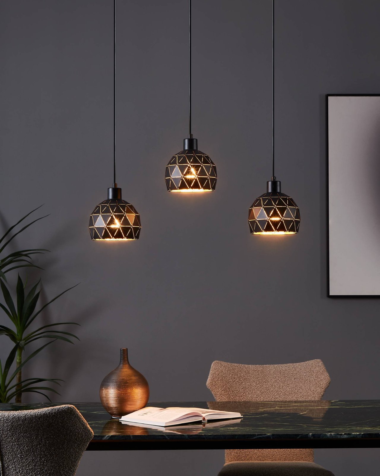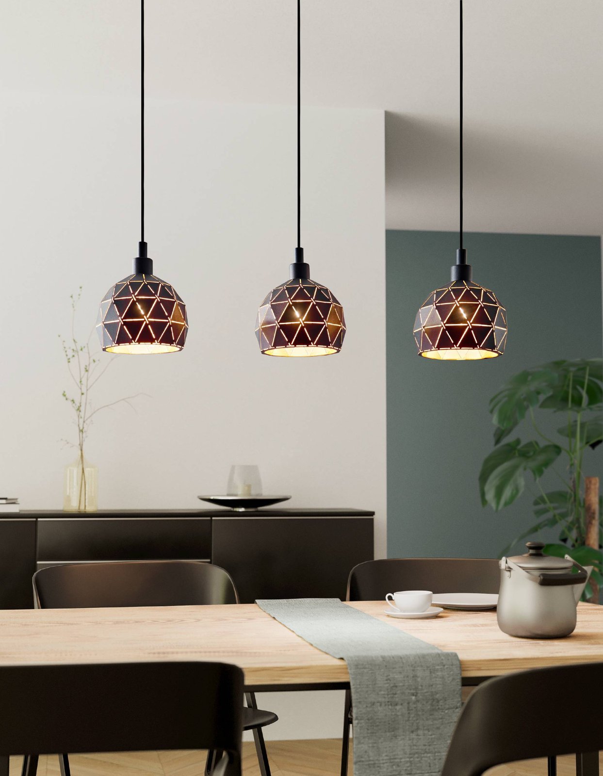 Veľmi zaujímavé svietidlá vyrobené z ocele v čiernej farbe, vnútorná strana tienidla je zlatá. Sú vhodné predovšetkým do jedální a kuchýň nad kuchynský ostrovček, ale zaujímavým prvkom budú aj v obývacej izbe. |