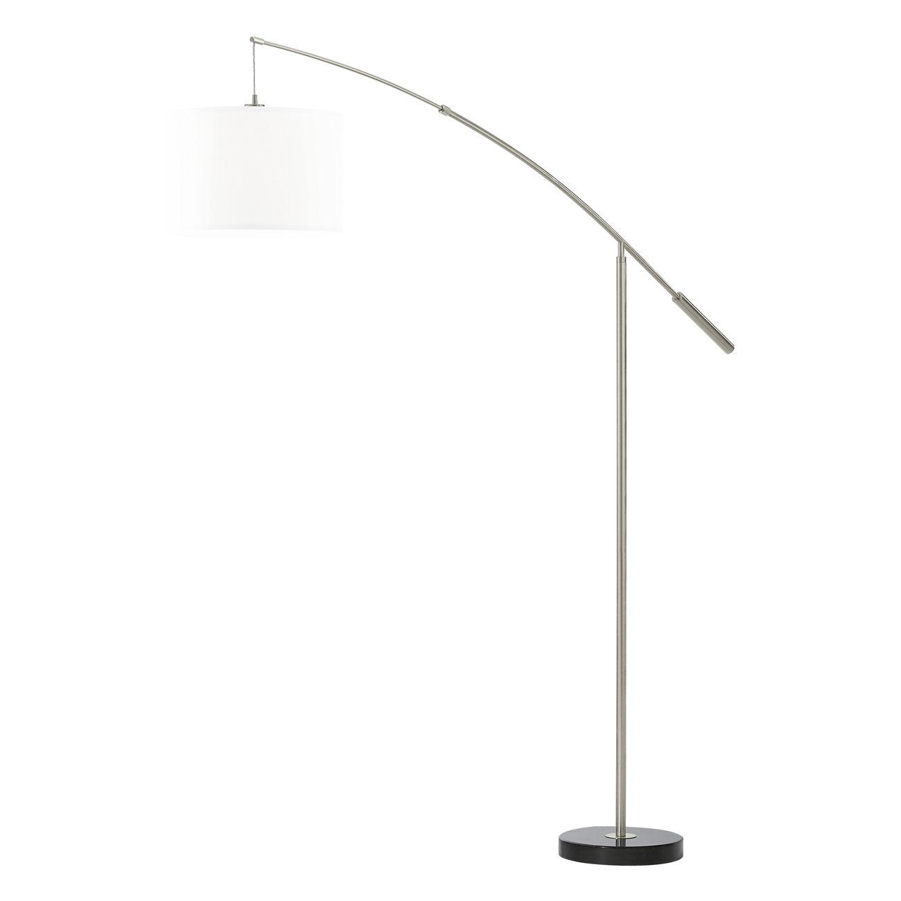 Štýlová a moderná lampa ako zaujímavý prvok do obývacej izby. Je vyrobená z celi vo farbe matný nikel a z textilu v bielej farbe. |