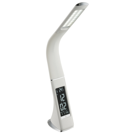 GL-58333 Stolní svítidlo, plast, bílá, chrom, s hodinami a budíkem, flexi, stmívatelné, fixace barev, dotykový stmívač, Dx?xV: 25x7x51cm, 1xLED 6,5W 230V, 260lm, změna barvy světla, 3000-4500-5800K - Sophie LED