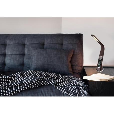 GL-58335 Stolní svítidlo, plast, šedá, chrom, s hodinami a budíkem, flexi, stmívatelné, fixace barev, dotykový stmívač, Dx?xV: 25x7x51cm, 1xLED 6,5W 230V, 260lm, změna barvy světla, 3000-4500-5800K - Sophie LED