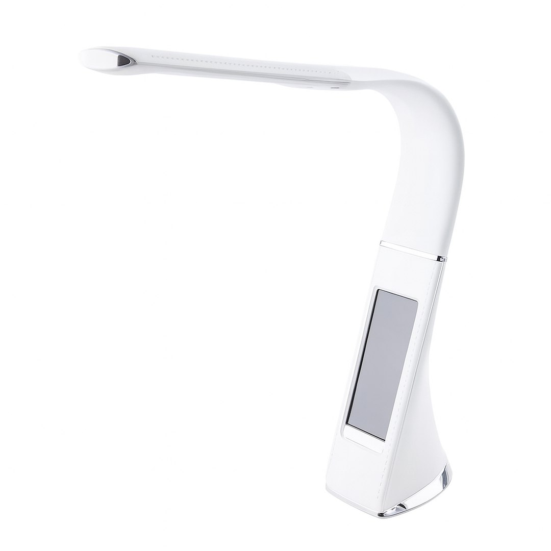 Stolní lampa GALA 141 je vyrobena v moderním stylu. Ve svítidle je integrován energeticky úsporný LED modul, jehož příkon je 6 W, což odpovídá 31 W u tradičního světelného zdroje. Barevná teplota modulu je 3 000 K. LED dioda poskytuje teplou bílou barvu. Světelný tok je 350 lm. Svítidlo je navíc vybaveno dotykovým spínačem světla s nastavením intenzity ve třístupňové škále. Světelný zdroj je umístěn v kovovém rámu s oblým tvarem. Jeho rameno lze nastavit tak, aby vyhovovalo vašim potřebám. Stolní lampa je nejen ideálním způsobem, jak osvětlit místo práce nebo odpočinku. Díky elektronickému displeji zabudovanému do svítidla zobrazuje čas a teplotu uvnitř. Výška lampy je 50 cm a rozměry jejího podstavce jsou 9 cm a 6 cm. Lampa GALA 141 v hnědé barvě je dokonalým doplňkem ke starým dřevěným psacím stolům a koženým křeslům a pohovkám. Překvapí svou elegancí a jednoduchostí zároveň. Kromě domácí kanceláře se bude skvěle hodit také jako noční lampička v ložnici. Na tento model se vztahuje záruka 24 měsíců. |