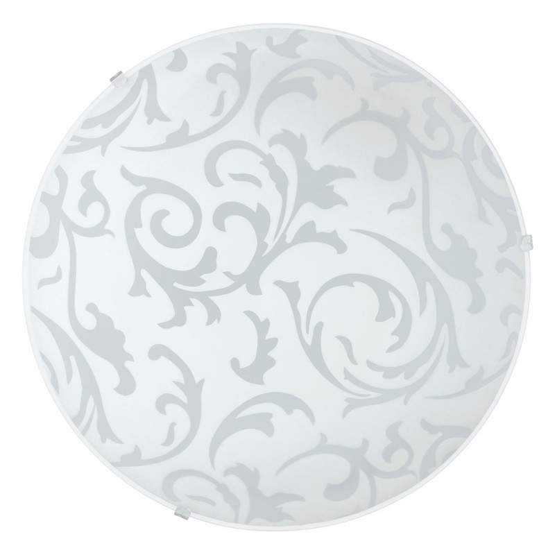 Okrúhle svietidlo, ktoré je možné osadiť na stenu aj strop. Je vyrobené z ocele v bielej farbe a zo satinového skla s dekorom. Hodí sa do obývacích izieb, spální, chodieb a pracovní. |