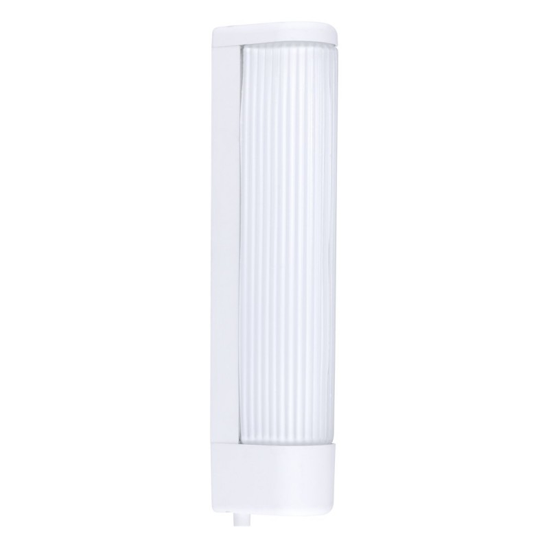 Nástenné kúpeľňové svietidlo vyrobené z plastu a skla v bielej farbe. Svietidlo má integrovanú zásuvku, do ktorej môžete pohodlne zapojiť napr. fén alebo holiaci strojček. Svetlo sa vypína vypínačom na tele svietidla. |
