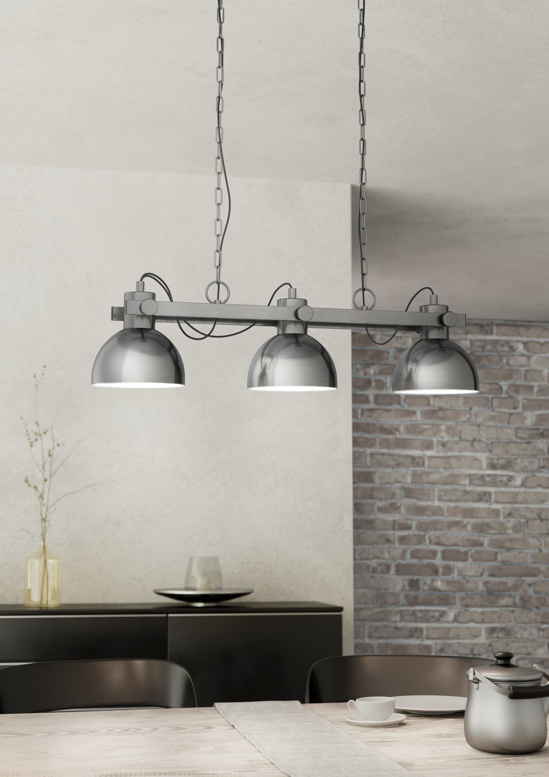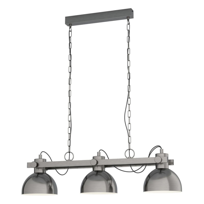 Industriálne svietidlo vyrobené z ocele vo farbe antický nikel a krémová. Tento luster s tromi hlavami sa krásne bude vynímať nad jedálenským stolom alebo kuchynským ostrovčekom.