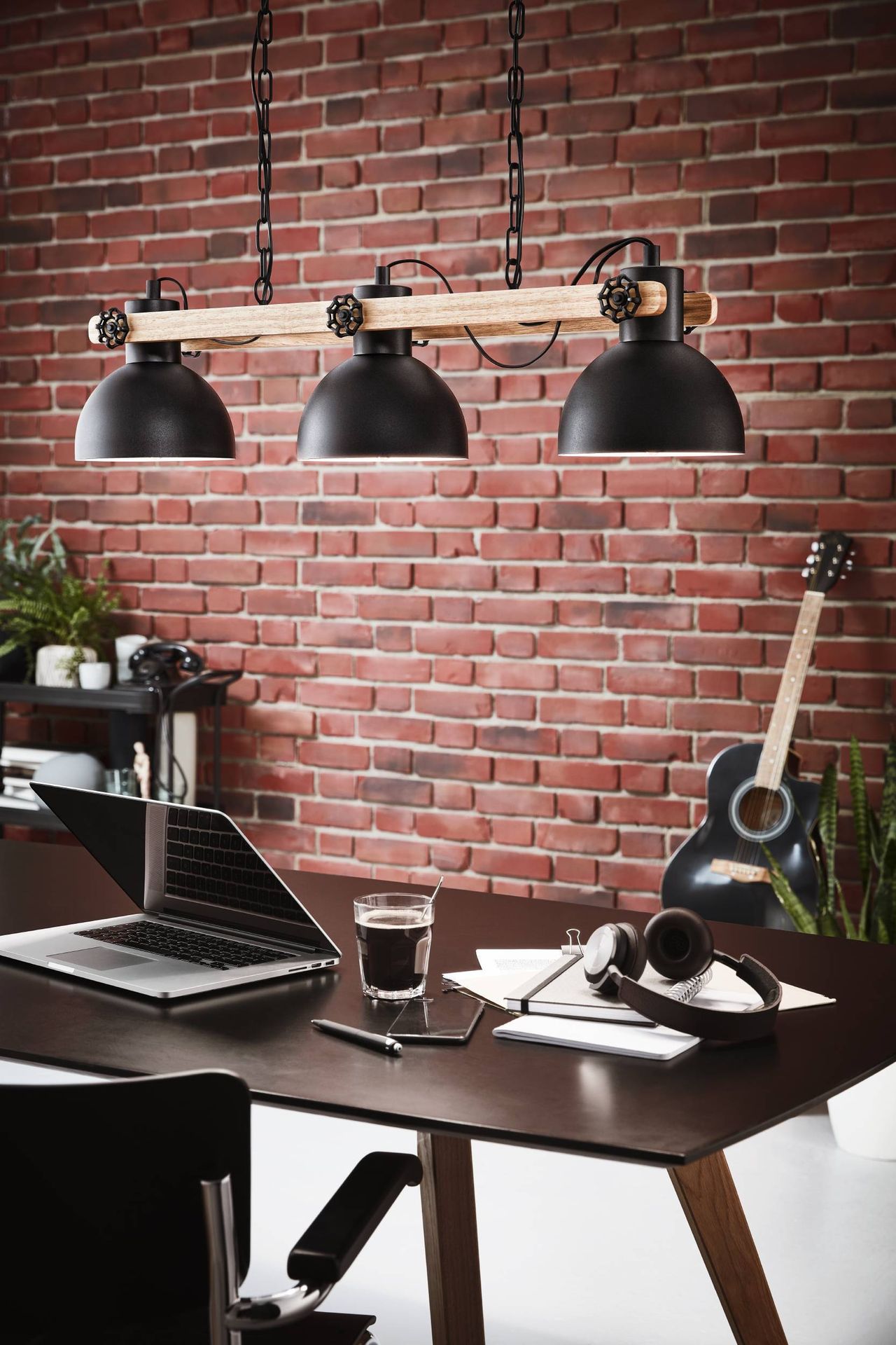 Súprava industriálnych svietidiel vyrobených z ocele v čiernej farbe a zo svetlého dreva. Umiestnite svietidlá do kuchyne nad kuchynský ostrovček alebo kuchynský stôl, alebo do obývacej izby, doplňte o lampu a stolnú lampičku, čím získate perfektný a ucelený celok vášho interiéru. |