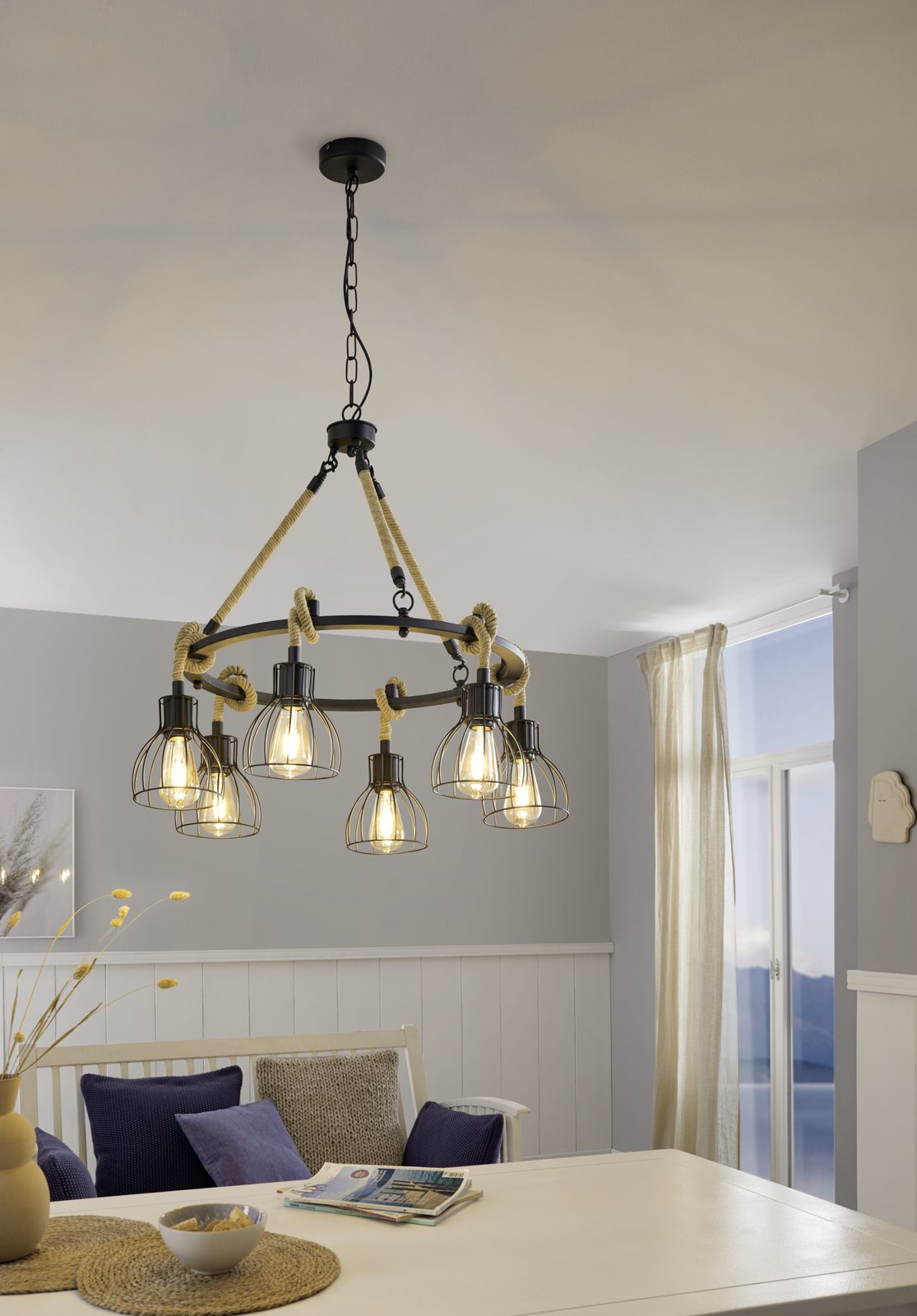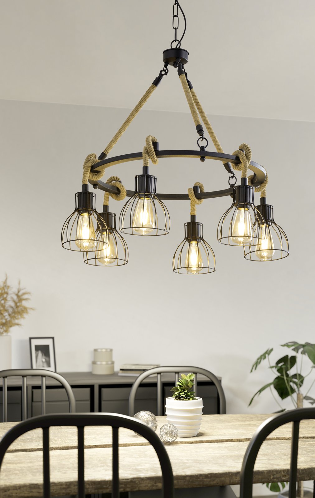 Štýlové svietidlá vo vintage štýle vhodné do kuchýň, jedální a obývacích izieb. Sú vyrobené z ocele a povrazu, na ktorom sú umiestnené snítidla. |