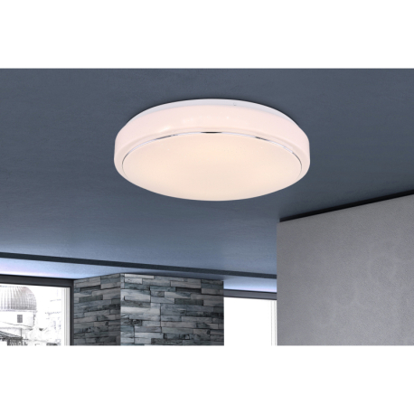 GL-48408-24 Stropní svítidlo, kov bílý, plast bílý, chrom, třpytivý efekt, paměťová funkce, změna barvy světla přes nástěnný vypínač, Ø38cm, V:8cm, včetně 1xLED 24W 230V, 1800lm, změna barvy světla 4000-6000K - Kalle LED