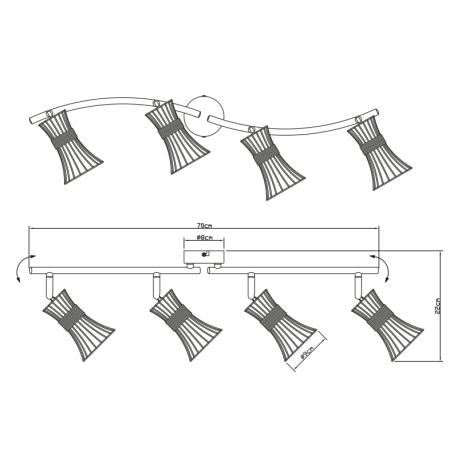 GL-54814-4 Stropní svítidlo, kov černý a zlatý, kovové tyče černé a zlaté, pohyblivé, DxV: 70x22cm, bez žárovek 4xE14, max. 40W 230V - Purra 2