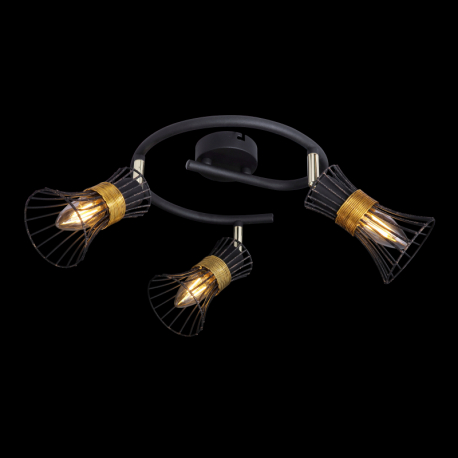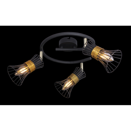 GL-54814-3 Stropní svítidlo, kov černý a zlatý, kovové tyče černé a zlaté, Ø25cm, V:22cm, bez žárovek 3xE14, max. 40W 230V - Purra 2