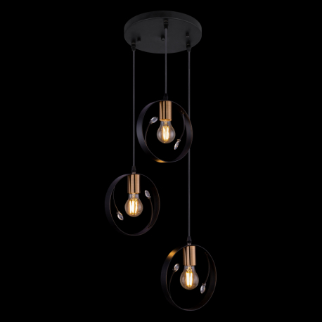 GL-15346-3 Závěsné svítidlo, kov černý, plastové křišťály průhledné, Ø39cm, V:150cm, bez žárovek 3xE27, max. 60W 230V - Vigo GL