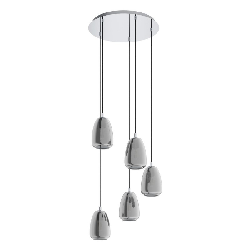 Moderné lustre vyrobené z ocele v chrómovej farbe, tienidlá sú vyrobené zo skla v dymovej farbe. Sú vhodné predovšetkým do kuchýň a jedální, nad jedálenský stôl alebo kuchynský ostrovček. |