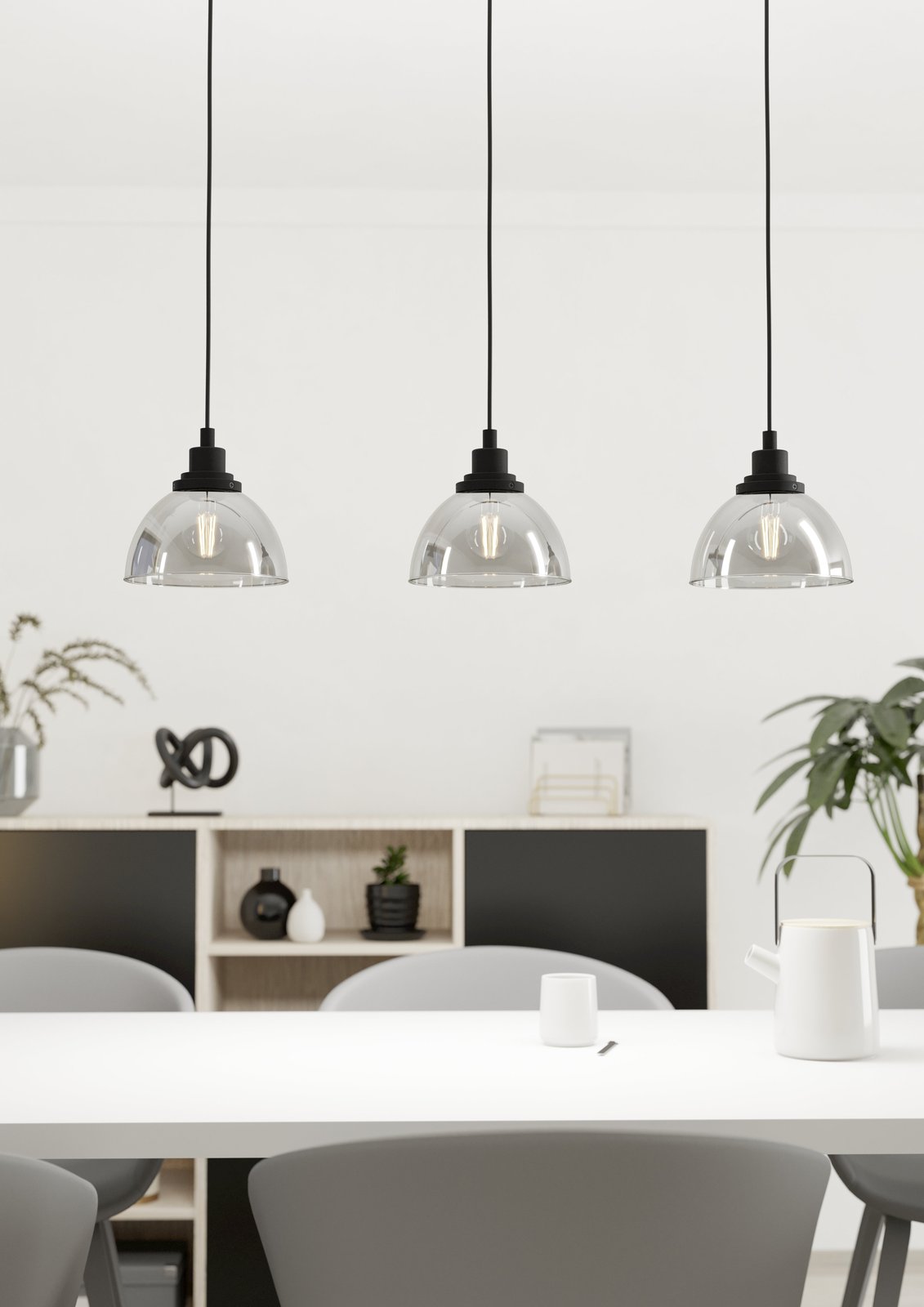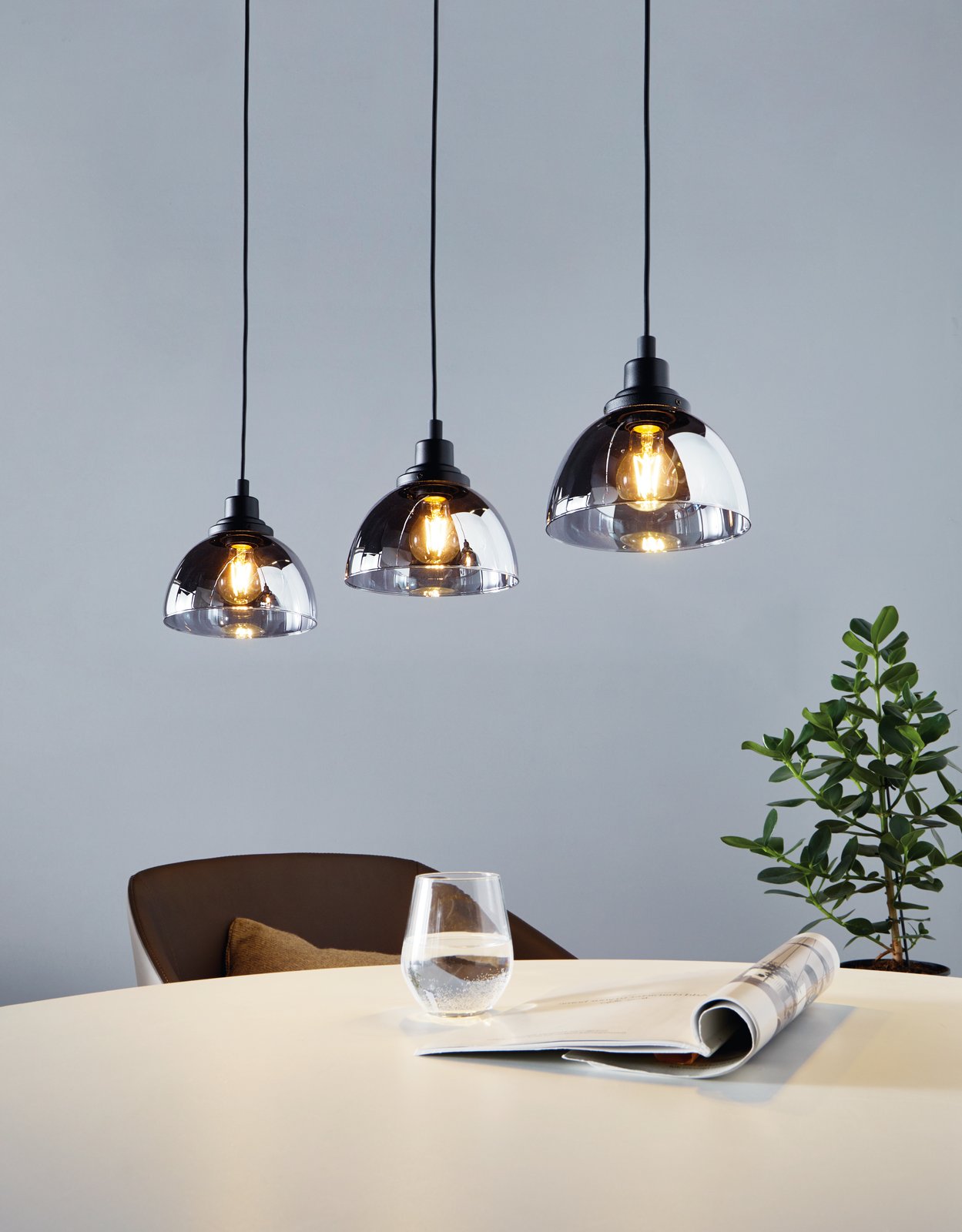 Beleser je moderný luster vhodný ako do obývacích izieb, tak do jedální nad jedálenský stôl alebo kuchyňou nad kuchynský ostrovček. Je vyrobený z ocele v čiernej farbe a zo skla v dymovej farbe. |