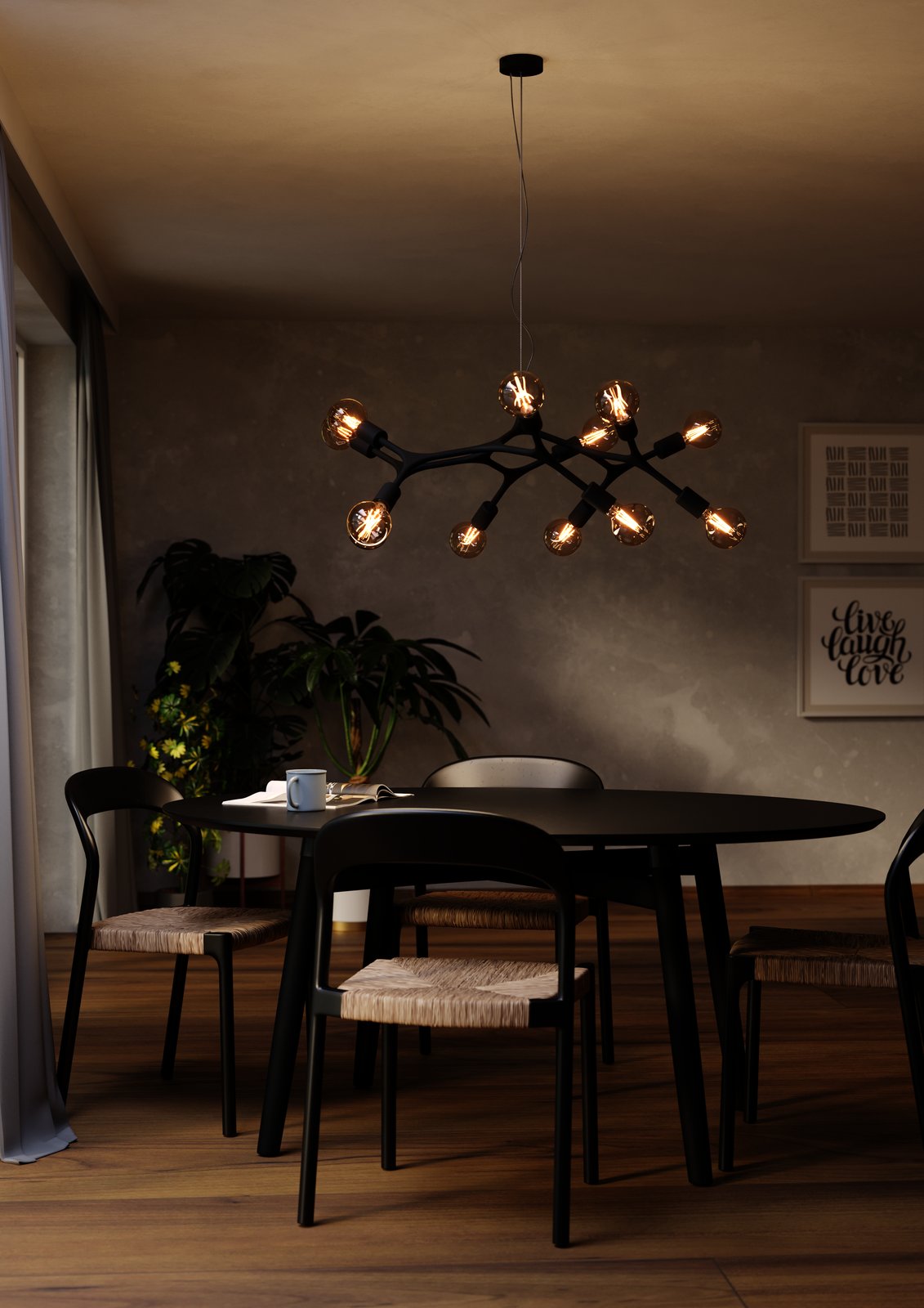 Moderné a štýlové lustre vyrobené z ocele v čiernej farbe. Veľmi zaujímavý prvok do vášho interiéru, predovšetkým do obývacích izieb a kuchýň. Je možné ich osadiť šikovnými LED žiarovkami a pomocou smartfónu ich stmievať, meniť farbu a teplotu svietenia. |