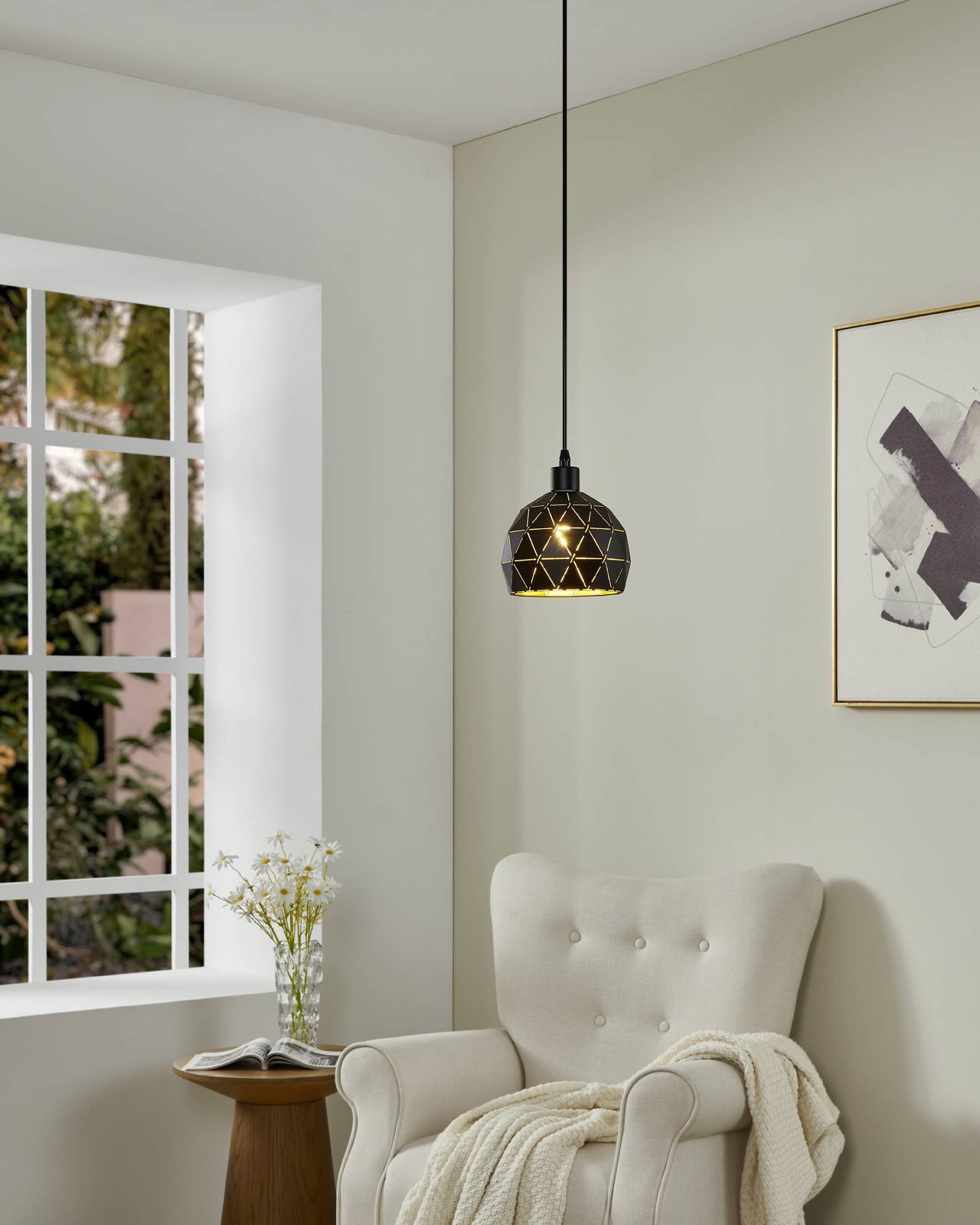 Veľmi zaujímavé svietidlá vyrobené z ocele v čiernej farbe, vnútorná strana tienidla je zlatá. Sú vhodné predovšetkým do jedální a kuchýň nad kuchynský ostrovček, ale zaujímavým prvkom budú aj v obývacej izbe.