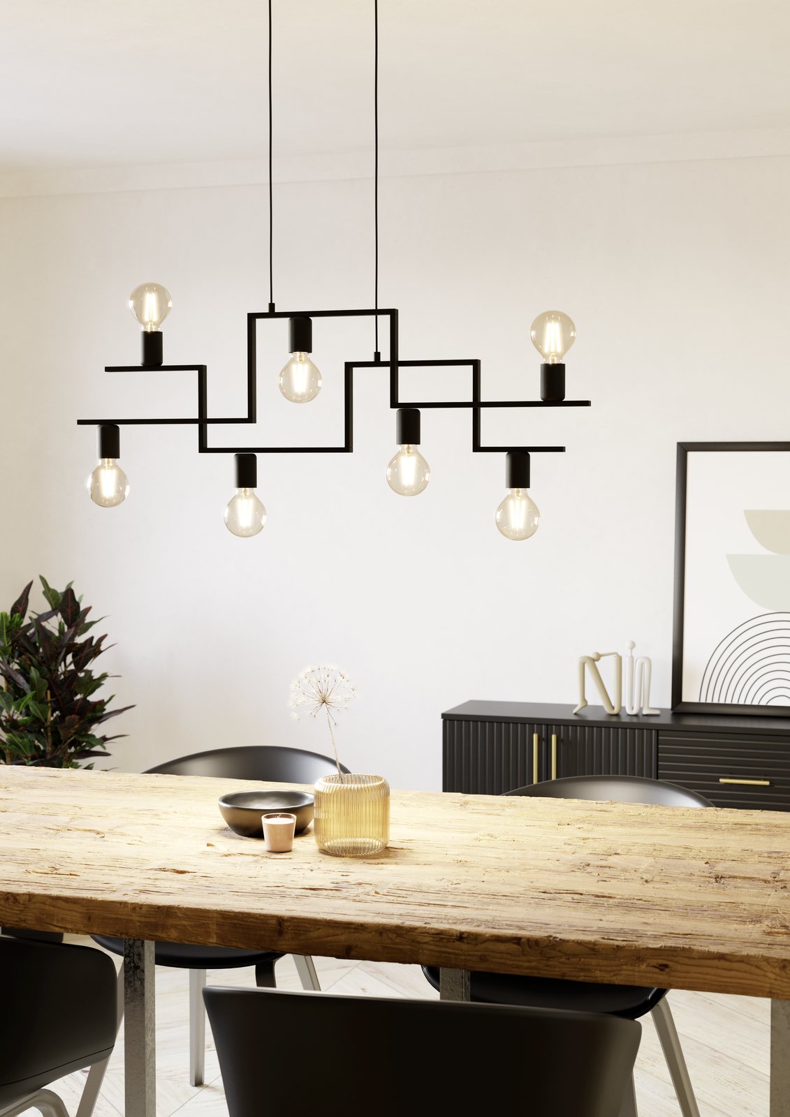 Dizajnový a štýlový luster vhodný do obývacích izieb, kuchýň i jedální. Je vyrobený z ocele v čiernej farbe. |