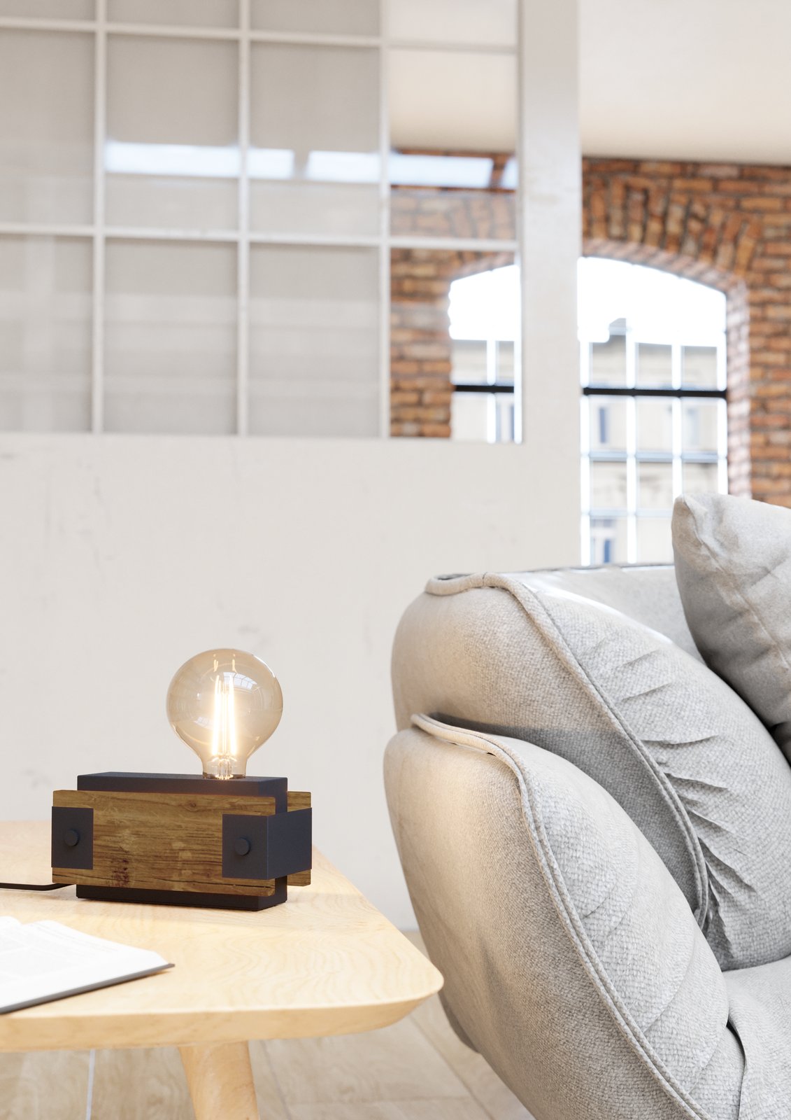 Dizajnová lampa a stolná lampička vhodná do všetkých moderných interiérov. Sú vyrobené z ocele v čiernej farbe a z dreva v hnedej farbe. |