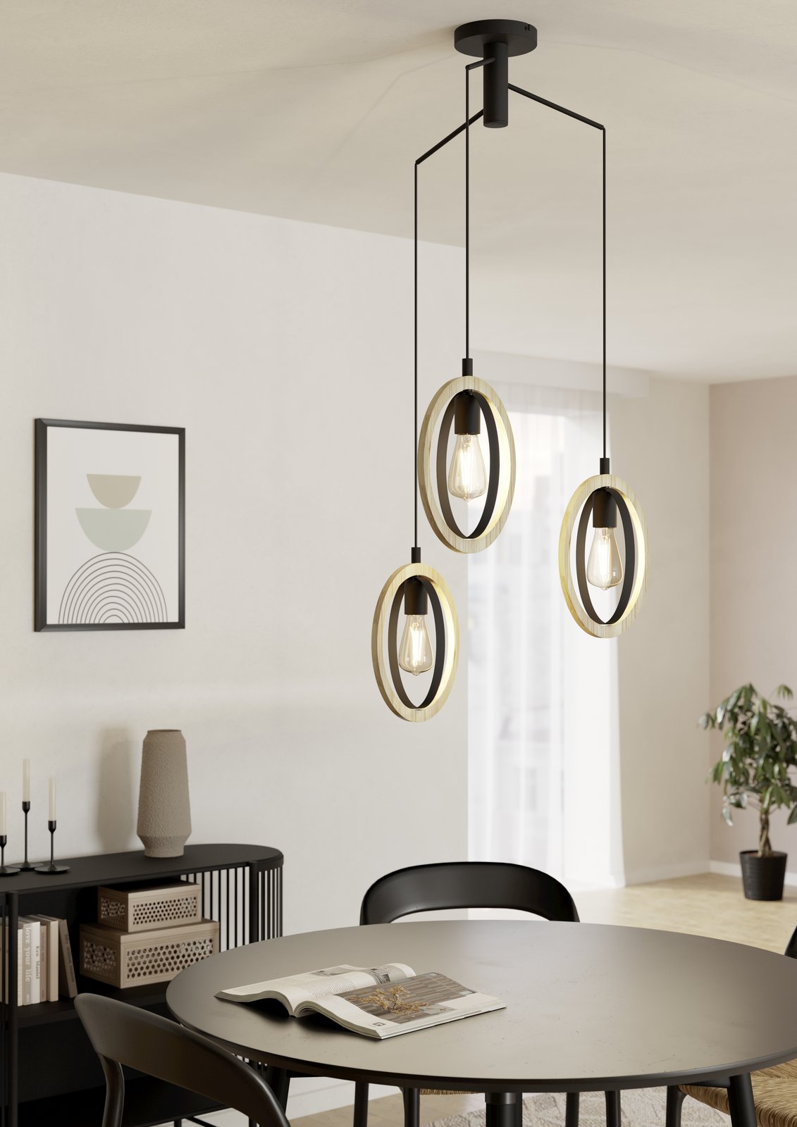 Egl-43463 HL/3 Ø615 E27 SCHWARZ/HOLZ 'BASILDON' - Basildon