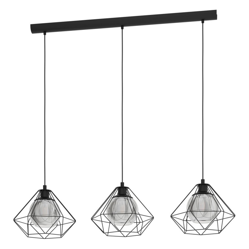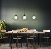 Štýlové lustre vyrobené z ocele v čiernej farbe a z dymového skla. V tienidle z oceľových drôtov je schovaná sklenená guľa. Tieto svietidlá budú zaujímavým prvkom vo vašej modernej domácnosti. |