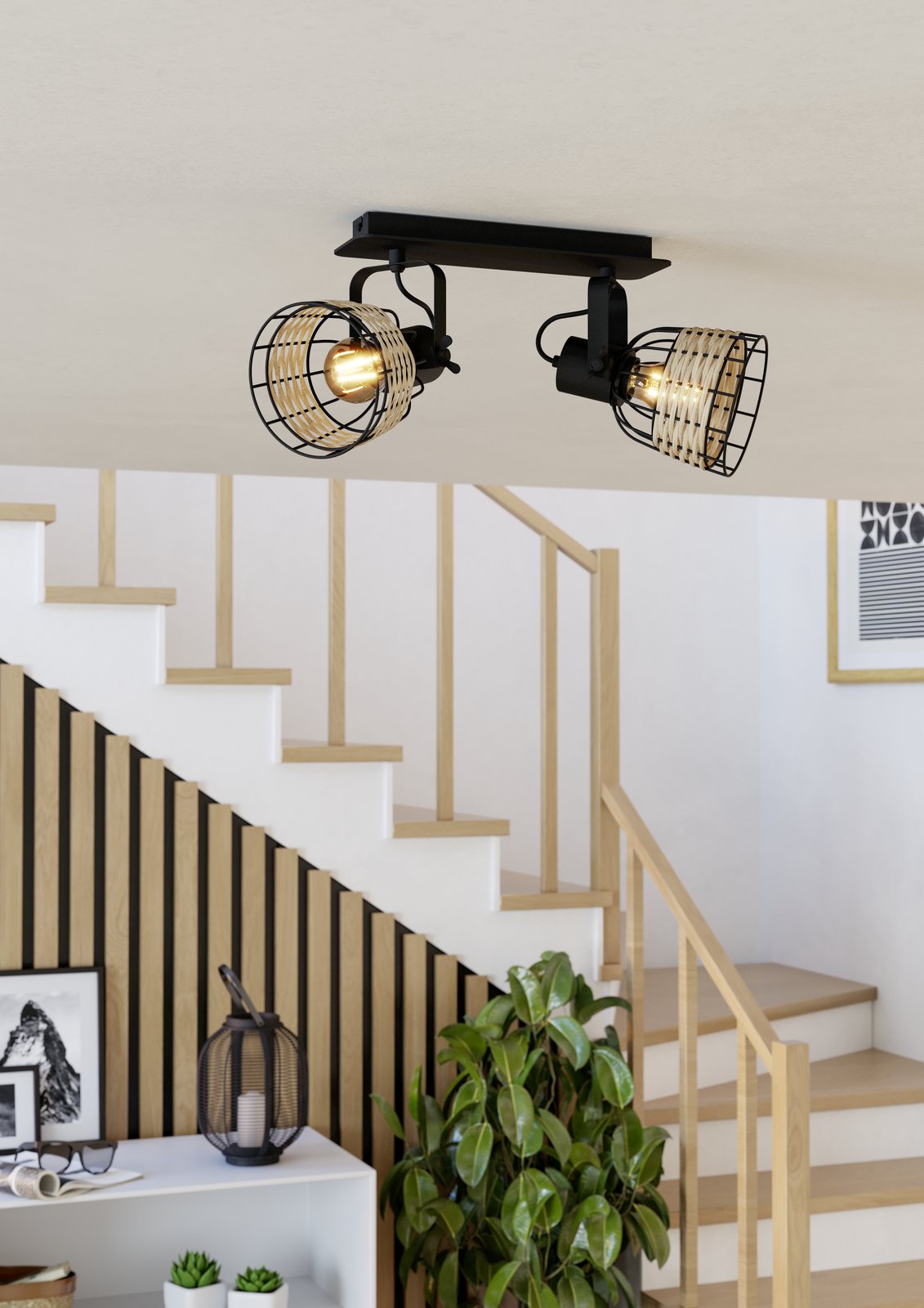 Egl-43325 BALKEN/2 E27 SCHWARZ/RATTAN 'ANWICK 1' - Anwick 2
