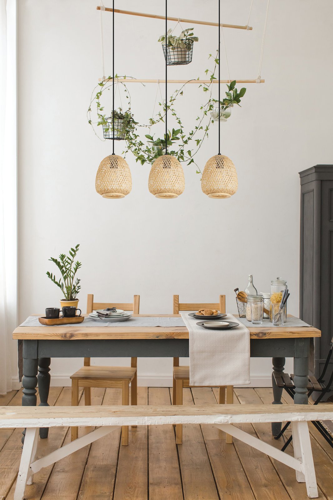 Elegantné závesné svietidlá Dembleby sú vyrobené z ocele v čiernej farbe a z dreva v prírodnej hnedej farbe. Hodí sa do interiérov, ktoré sú ladené do romantického štýlu. |