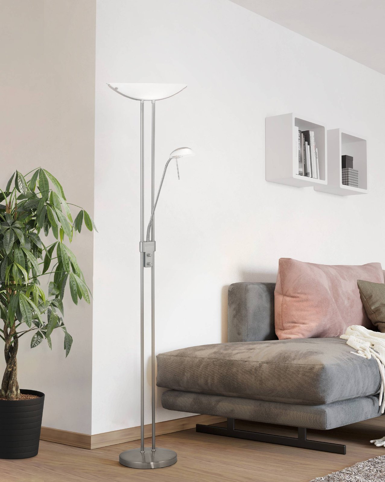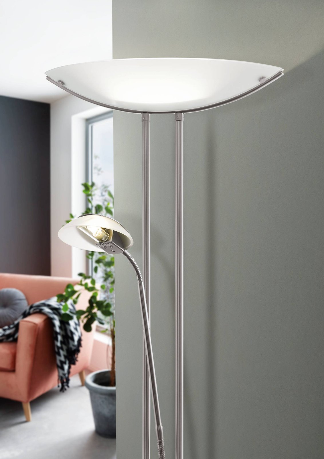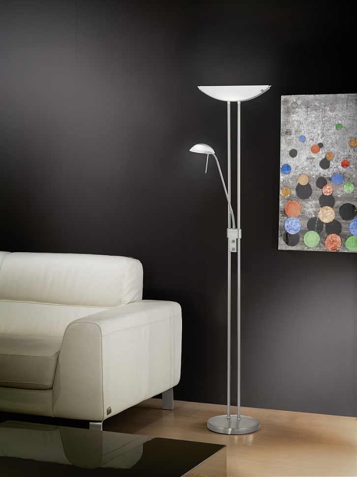 Lampy vyrobené z ocele a satinovaného skla. Majú prídavné rameno, ktoré možno rovnako ako hlavné tienidlo stmievať a voliť tak vhodnú intenzitu svietenia napr. pri čítaní. |