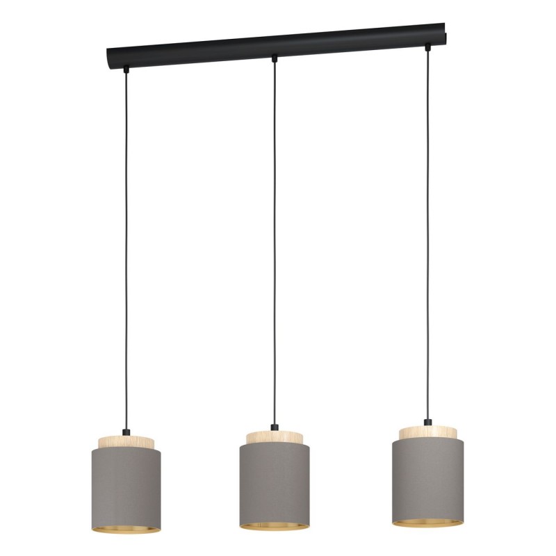 Pekné, moderné svietidlá vhodné predovšetkým do kuchýň a jedální, nad jedálenský stôl alebo kuchynský ostrovček, ale budú zaujímavým prvkom aj v obývacej izbe. Sú vyrobené z ocele v čiernej farbe s dreveným prvkom v hnedej farbe a z textilu v cappuccino a zlatej farbe. |