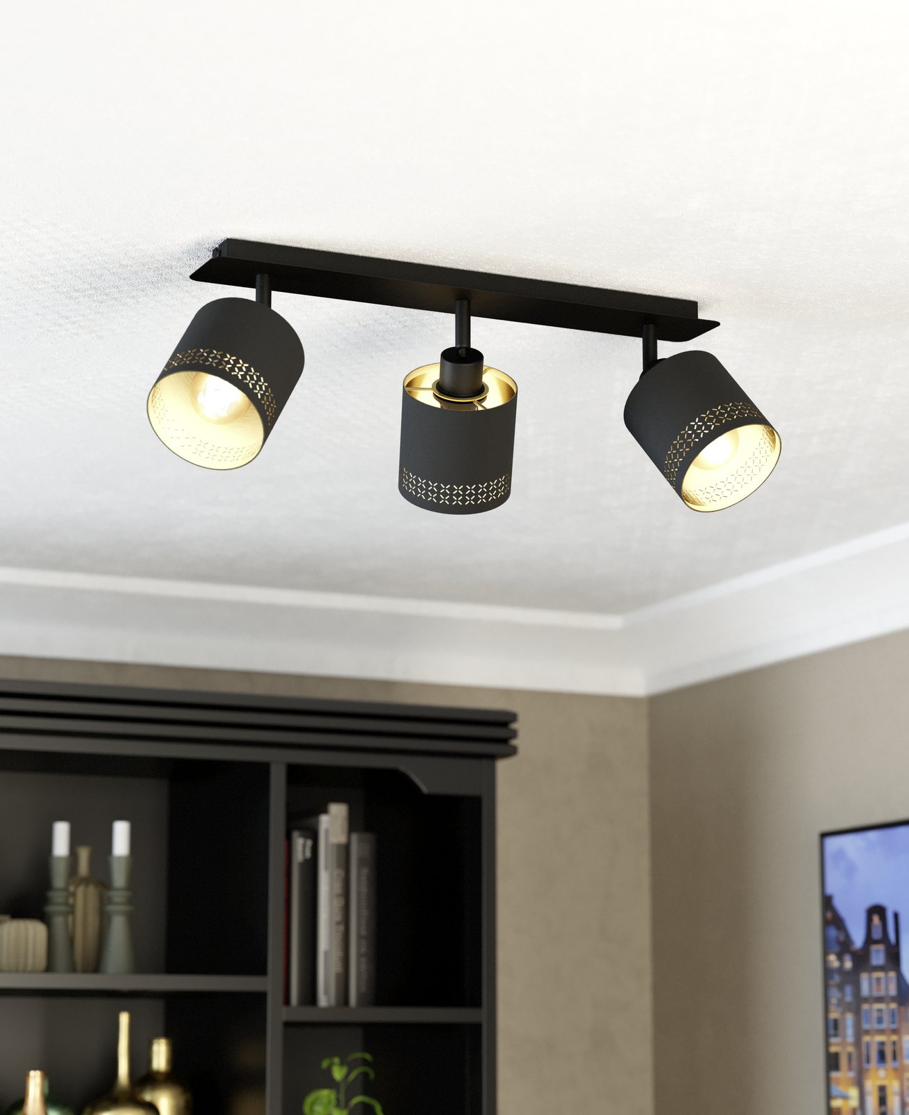 Moderné bodové svietidlá Esteperra sú vyrobené z ocele v čiernej farbe a z textilu v čiernej a zlatej farbe. Skombinujte ich s ostatnými svietidlami z tejto sady a vytvoríte ucelený celok vášho interiéru. |