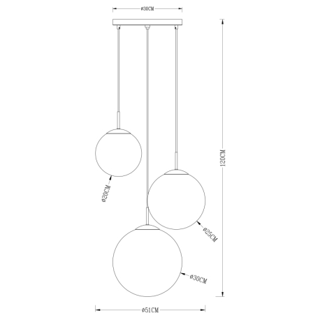 GL-15865-3 Závěsné svítidlo, kov hnědý, sklo amber, 3 koule Ø20 - 25 - 30 cm, Ø51cm, V:120cm, bez žárovek 3xE27, max. 40W 230V - Varus 4