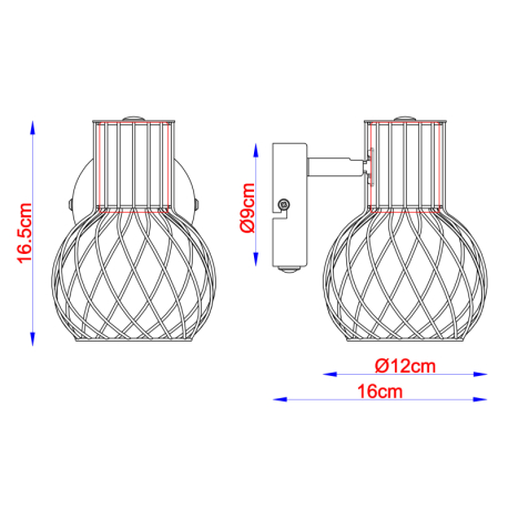 GL-54013-1 Nástěnné svítidlo, kov černý zlatý, kov černý, vypínač, ?xV: 12x17cm, H:16cm, bez žárovky 1xE27, max. 40W 230V - Argusto